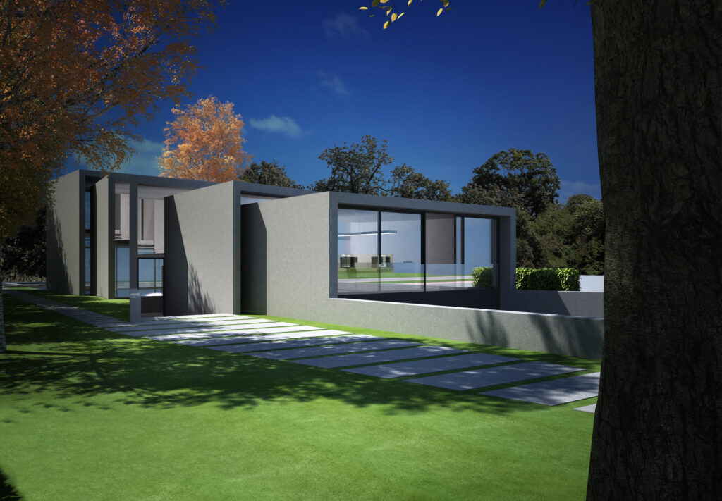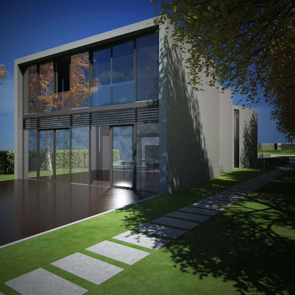 In samenwerking met Leon de Ruiter is deze onconventionele woon-werk villa ontworpen. Uit elkaar getrokken betonnen kaders, oplopend in hoogte en als een slang bewegend over het kavel zorgen voor een bijzondere verschijningsvorm. Uitgangspunt voor het ontwerp is de kwaliteit van de bosrand, gelegen tegenover de Witbrandlaan. In het bestemmingsplan wordt al rekening gehouden met het feit dat de doorzichten vanuit de wijk gehandhaafd dienen te worden. In dit ontwerp wordt deze doorkijk geoptimaliseerd.
