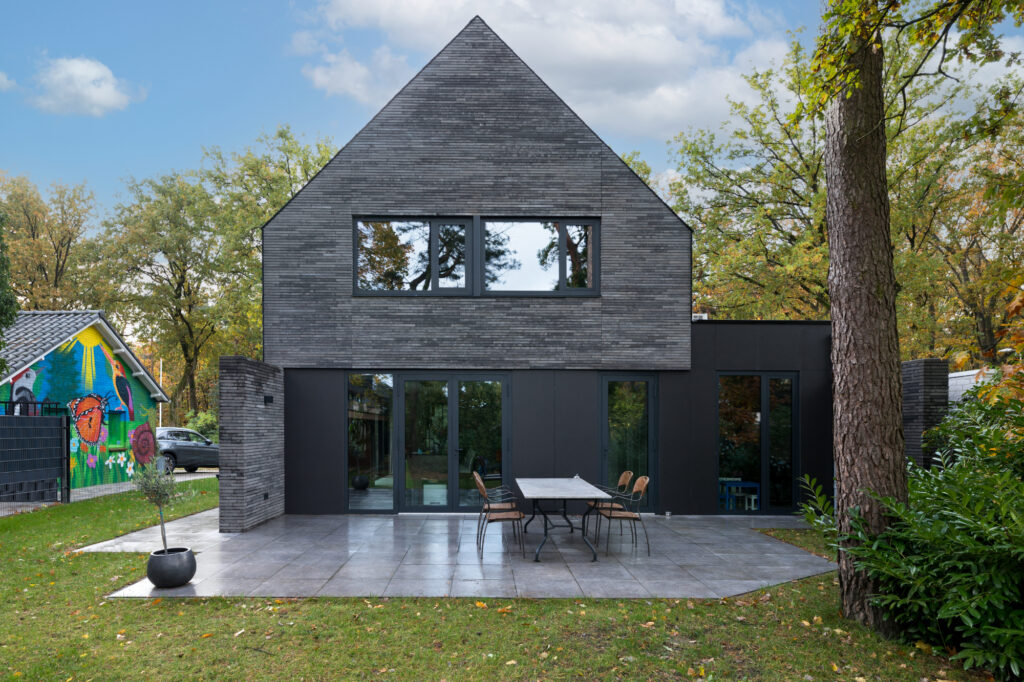 Deze gezinswoning lijkt qua opzet een nogal standaard Nederlandse woning als je door je oogharen kijkt; een zadeldak en metselwerk. Schijn bedriegt echter.