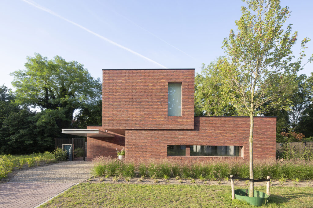 Indien men deze woning in oranje metselwerk door de oogharen bekijk, zal zij niet gelijk opvallen. Veel woningen zijn namelijk gemetseld en ook veel in deze oranje kleur. De zwevende carport, asymmetrische opzet en de specifieke metselwerk detailleringen zorgen er echter voor dat het verder ingetogen ontwerp toch zeer uitgesproken is.